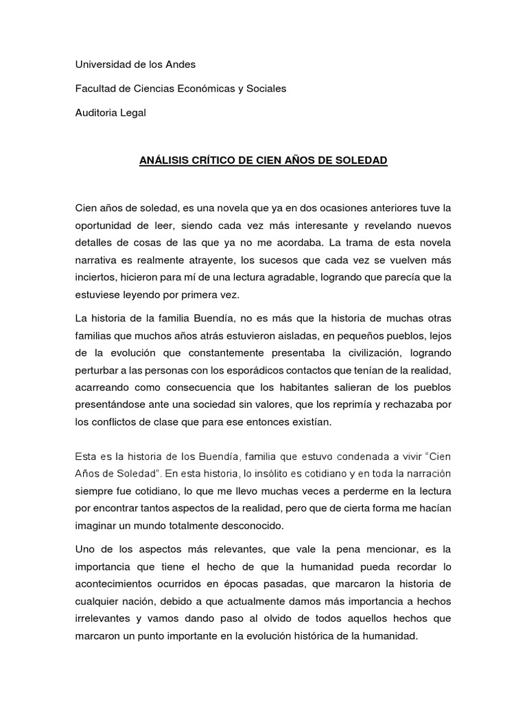 Doc Analisis De Cien Anos De Soledad Andrea Prieto Academia Edu